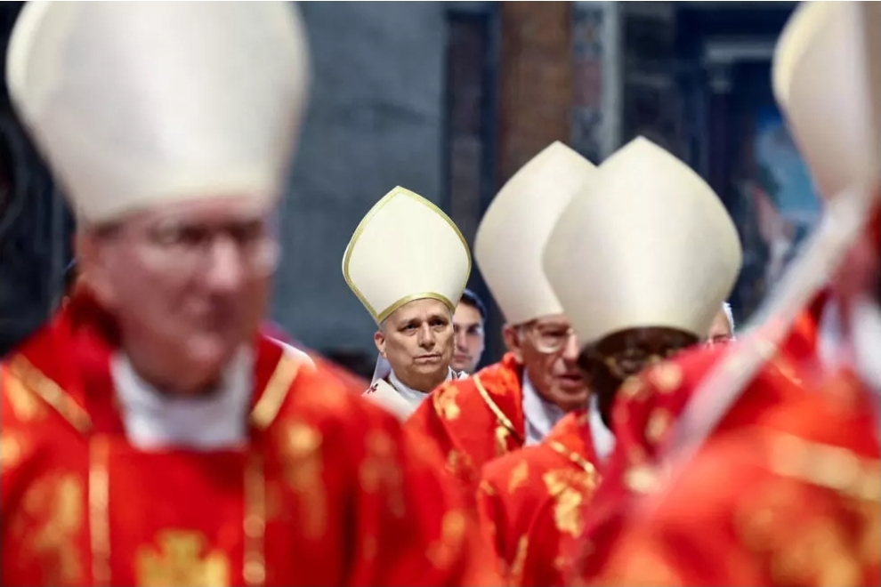 Papa Leo XIV mbërrin për të kryesuar Meshën në përkujtim të Papës së ndjerë Françesku dhe të kardinalëve e ipeshkvijve të ndarë nga jeta gjatë vitit, në Bazilikën e Shën Pjetrit, në Vatikan, më 3 nëntor 2025. © Yara Nardi, Reuters
