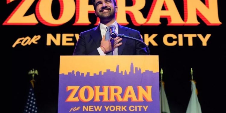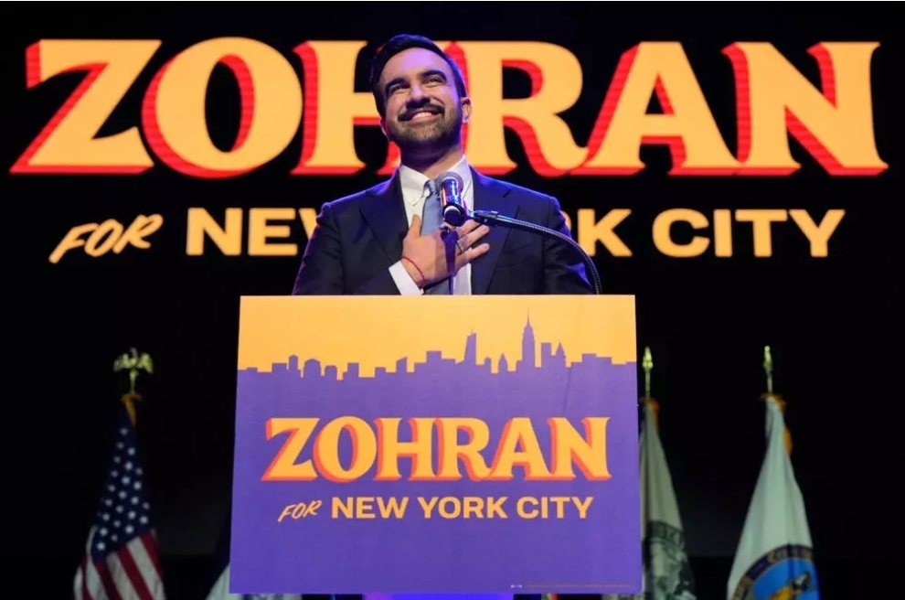 Zohran Mamdani duke mbajtur fjalimin e fitores në mbrëmjen e zgjedhjeve për kryetar bashkie, më 4 nëntor 2025, në Nju Jork. © Yuki Iwamura, AP