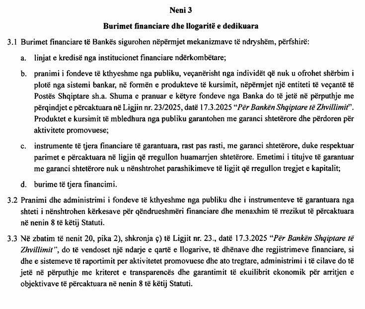 “Në mars 2025, u miratua ligji që themelon Bankën Shqiptare të Zhvillimit si një institucion që pranon depozita. Ky ligj ngre shqetësime të mëdha në lidhje me përputhshmërinë me rregullat e Bashkimit Evropian për konkurrencën dhe ndihmën shtetërore në sektorin bankar…”
