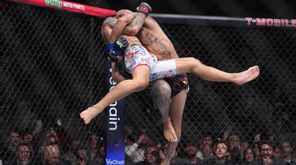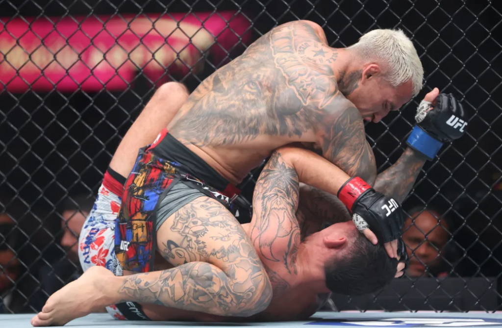 Charles Oliveira, 36 vjeçari brazilian, ish kampion i botës në peshën 155 lbs (70 Kg), e fitoi mbrëmë në Las Vegas (T.Mobile Arena) titullin BMF-së pas një ndeshjeje të cilësuar si masterklas i ‘Grappling’ dhe ‘Jiu-Jitsu’ kundër të famshmit nga HAWAI, Max Holloway në eventin kryesor të mbrëmjes – UFC 326. Të dy ish kampionë bote në dy divizione peshash u përballën në një ndeshje që pritej më luftarake nga publiku, por që Oliveira e ktheu në një ndeshje “shahu” me 5 raunde të fituara tërësisht, duke e mbajtur kundërshtarin në tapet gjithë kohën nën kërcënimin e “via submission” (dorëzimit) me “rear-naked choke”, një pozicion fatal ky i krahëqafës, ku luftëtarët e arteve kanë vetëm dy mundësi: të dorëzohen ose të kthehen në trupa pa “jetë”, pa ndjenja.