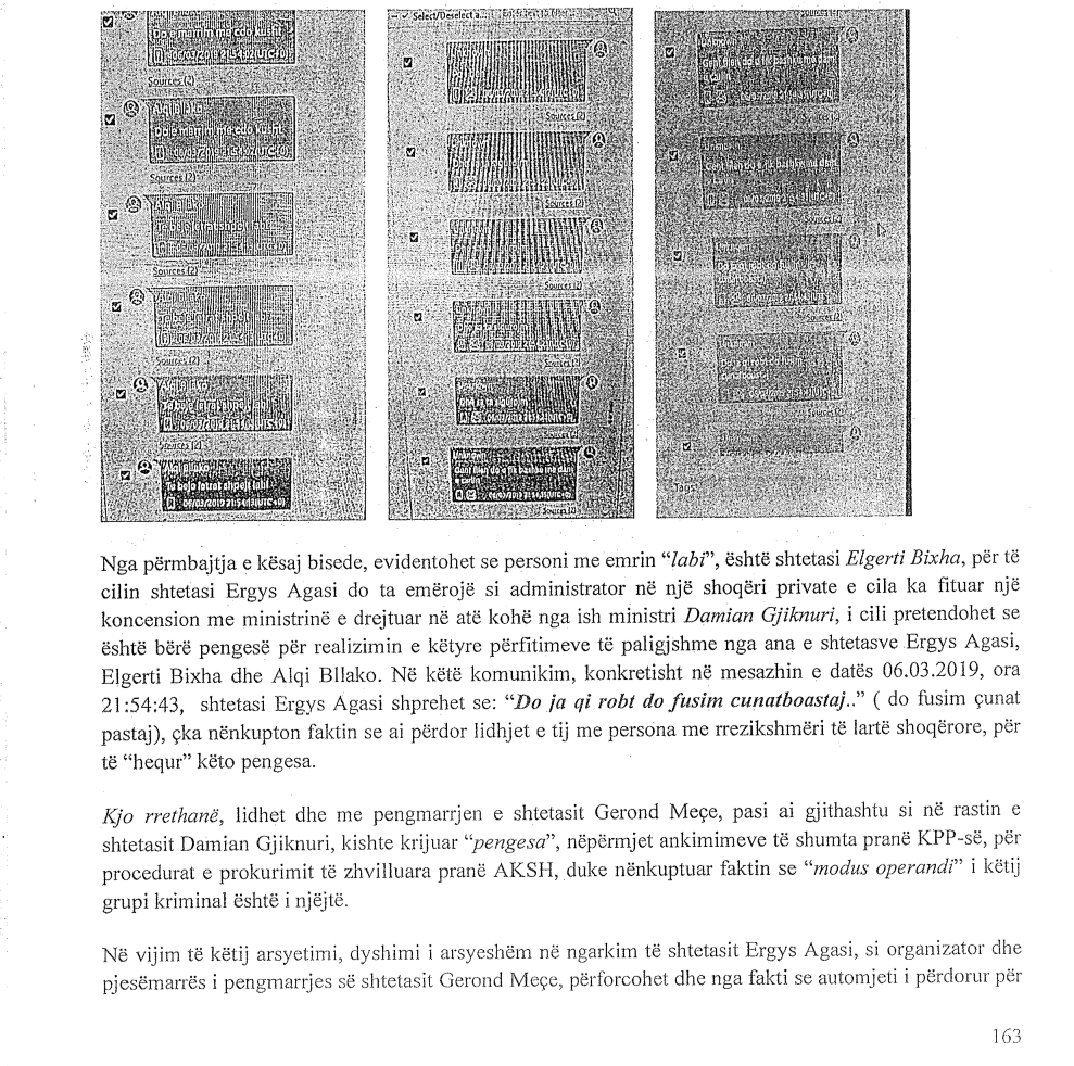 Në bisedën e fiksuar nga SPAK, identifikohet personi me emrin “Labi”. Ai është Elgerti Bixha të cilin Ergys Agasi pretendonte të emëronte në atë kohë si administrator në një shoqëri private e cila kishte fituar një koncesion me Ministrinë e Infrastrukturës dhe Energjisë që asokohe drejtohej nga Damian Gjiknuri. Ky i fundit ishte bërë pengesë për realizimin e disa përfitimeve të paligjshme nga ana e Agasit, Bixhës dhe Bllakos, ndaj ai i shkruan miqve të tij në komunikim me mesazh se “Do t’ia q* robt, do fusim çunat pastaj”.