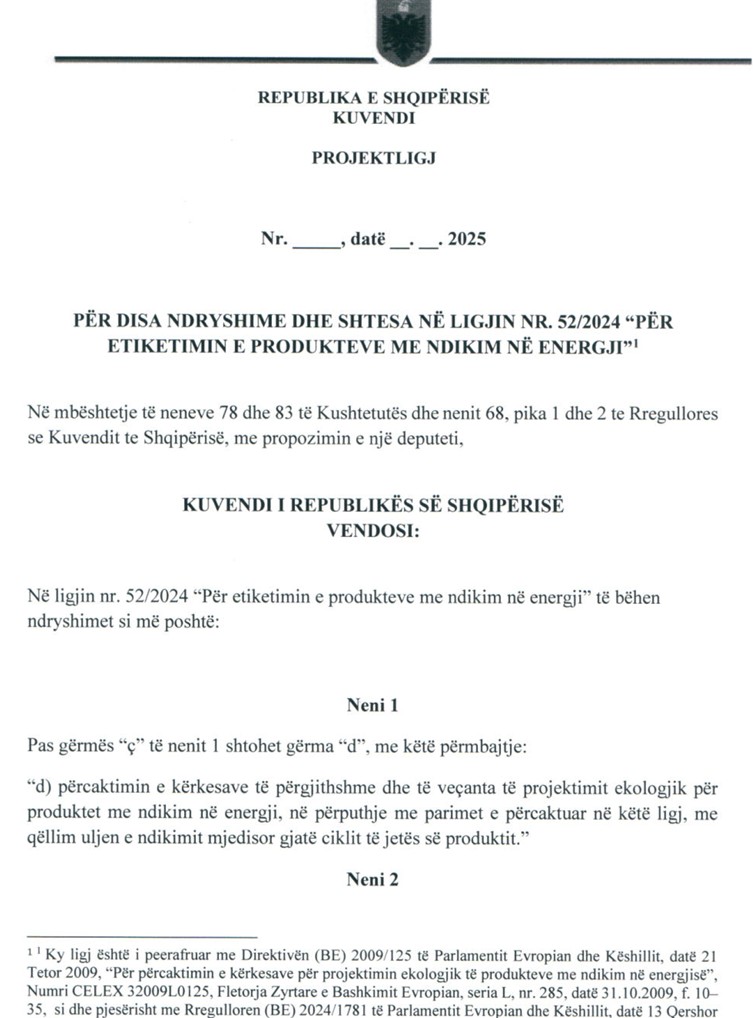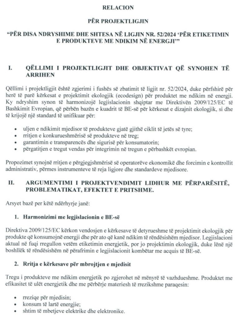 Miratuar e hyrë në fuqi në maj – qershor 2024, i shpallur me shumë “krenari” parlamentare, si i përafruar plotësisht me Rregulloren (BE) 2017/1369, ky ligj që nuk i ka mbushur akoma dy vite jetë, tashmë po ribëhet.