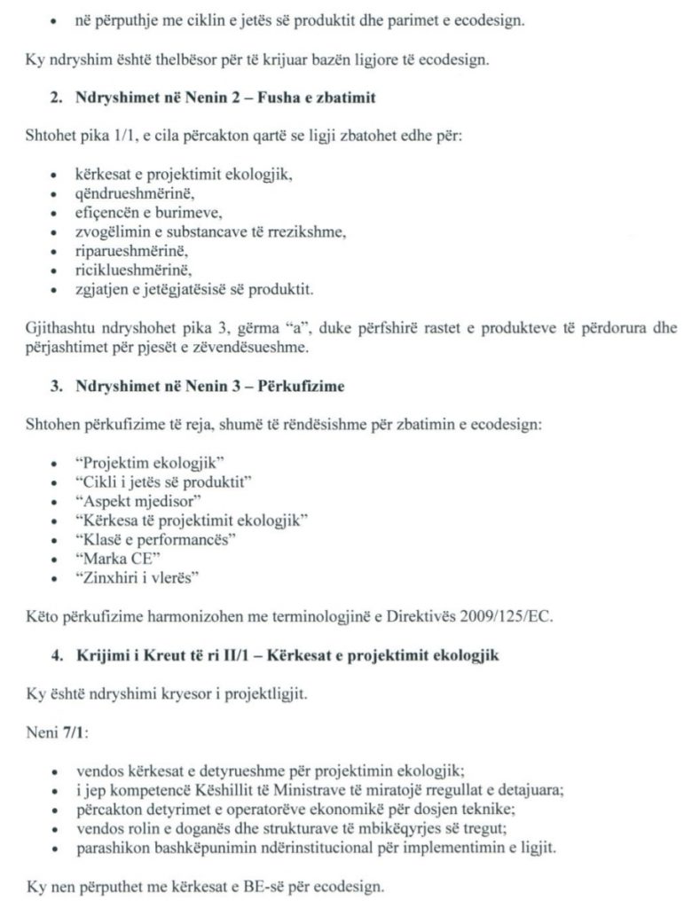 Por se cilat janë këto kërkesa ekodizajni sipas projektligjit, ai nuk e thotë.