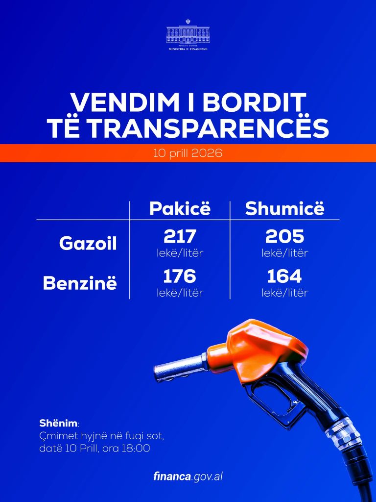 Çmimet e vendosura nga Bordi i Transparencës janë poshtë pragut magjik të 220 lekëve për naftën dhe 200 lekëve për benzinën. Kjo do të thotë se, qytetarët kanë privilegjin të paguajnë 100% të akcizës, pra jo vetëm 80% të saj.