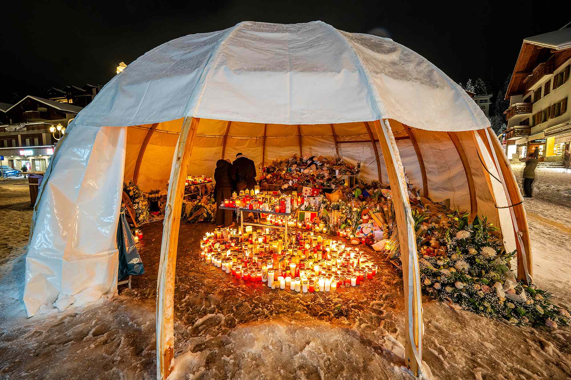 Memoriali ishte improvizuar pranë lokalit “Le Constellation” në qytetin turistik të skive Crans-Montana dhe ishte mbushur me lule, qirinj dhe mesazhe ngushëllimi. Pamjet e transmetuara nga televizioni publik RTS treguan strukturën mbrojtëse mbi memorial të nxirë nga tymi, ndërsa zona ishte rrethuar me shirita policie.