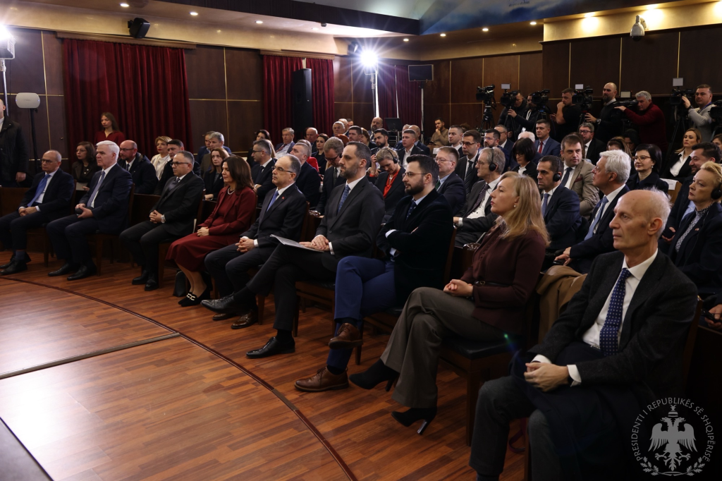 Përballë trupës me veshjet pompoze të Gjykatës së Lartë, qëndronte skalioni i parë i autoriteteve më të larta morale dhe institucionale të shoqërisë sonë me në krye Avokatin e Popullit, Endrit Shabani, çunakun ministër drejtësie, Besfort Lamallari, Presidentin e Republikës Bajram Begaj, Kryetaren e Gjykatës Kushtetuese Fiona Papajorgji, Kryetarin e Këshillit të Lartë Gjyqësor, Ilir Rusi, Kryetaren e Kёshillit tё Lartё tё Prokurorisё, Mirela Bogdani, ish-Kryetarin e Komisionit të Ligjeve, Fatmir Xhafaj, Arben Rakipin e Kodit Penal, dhe Rektorin e UET, Artan Hoxha.