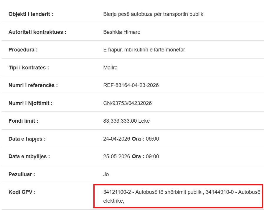 Bashkia Himarë ka hapur procedurën për blerjen e 5 autobusëve, një kontratë me vlerë të konsiderueshme për një njësi vendore, që në çdo rrethanë duhet të garantonte konkurrencë të gjerë dhe transparencë maksimale. Por mënyra si është ndërtuar ky tender tregon një logjikë tjetër: jo si të marrim ofertën më të mirë, por si të kufizojmë sa më shumë rrethin e atyre që mund të konkurrojnë.