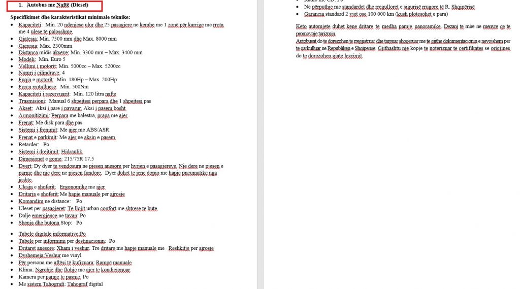 Autobusët përshkruhen me një saktësi të pazakontë për një tender publik