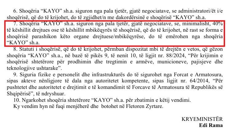 Në pamje të parë, ndërtimi i një industrie vendase të mbrojtjes duket si një hap strategjik i vonuar, por i domosdoshëm. Ligji nr. 88/2024 krijon shoqërinë shtetërore “KAYO” dhe i jep asaj një mandat të gjerë për prodhimin, tregtimin dhe zhvillimin e teknologjive ushtarake, duke e pozicionuar si instrumentin kryesor të shtetit në këtë fushë. Por mënyra se si ky mandat po konkretizohet përmes akteve nënligjore ngre shumë pikëpyetje dhe nuk jep asnjë garanci.