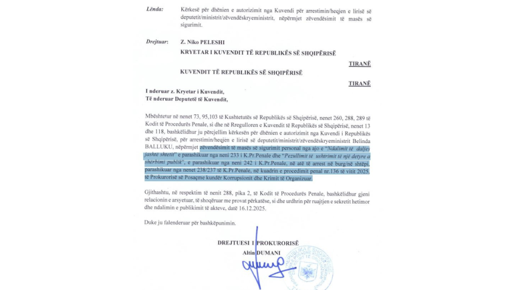 Më 16 dhjetor 2025, SPAK depozitoi kërkesën në Kuvend për arrestimin e zёvendёskryeministres të pandehur Belinda Balluku. Më 16 mars 2026, kur mbushen 3 muaj të plotë, nëse Kuvendi nuk i përgjigjet kërkesës së SPAK, atëherë kërkesa e SPAK konsiderohet e rrëzuar. Pra, rrëzohet edhe SPAK bashkë me kërkesën.