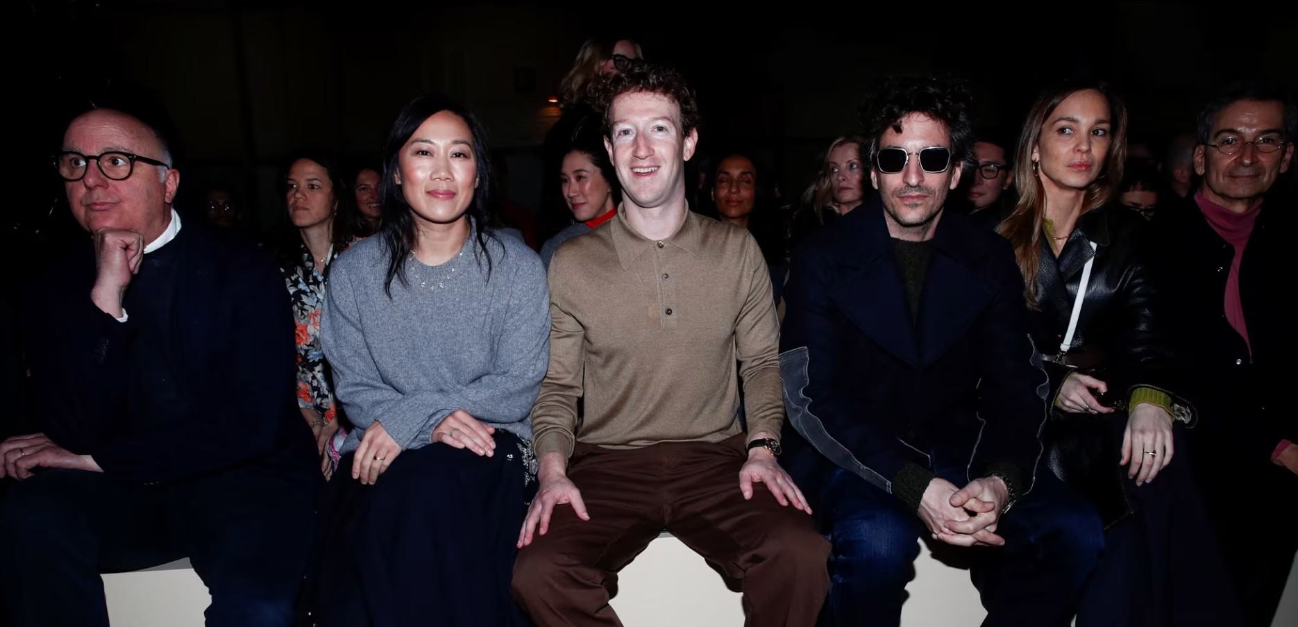 Drejtori ekzekutiv i Meta Platforms, Mark Zuckerberg, dhe bashkëshortja e tij Priscilla Chan në rreshtin e parë të shfaqjes së Prada për koleksionin vjeshtë–dimër 2026 gjatë Javës së Modës në Milano. Foto: Alessandro Garofalo / Reuters