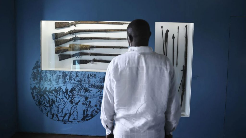 Në sallat e muzeut ekspozohen zinxhirë, pranga, manikela, armë dhe vizatime të kohës, që tregojnë brutalitetin e tregtisë së skllevërve: fshikullime me shkopinj me gozhdë, fëmijë të trajtuar si kafshë, të rritur të detyruar të shërbenin si shërbëtorë të përulur të kolonizatorëve.