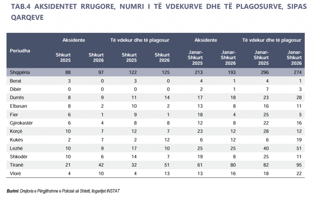 Shifrat e INSTAT për aksidentet rrugore për muajin shkurt na tregojnë edhe një herë më shumë panoramën e frikshme të rrugëve të Shqipërisë dhe rrezikun me të cilin përballen qytetarët çdo ditë. Pas çdo numri fshihen jetë të dëmtuara, familje të prekura dhe një sistem që vazhdon të dështojë në garantimin e sigurisë.