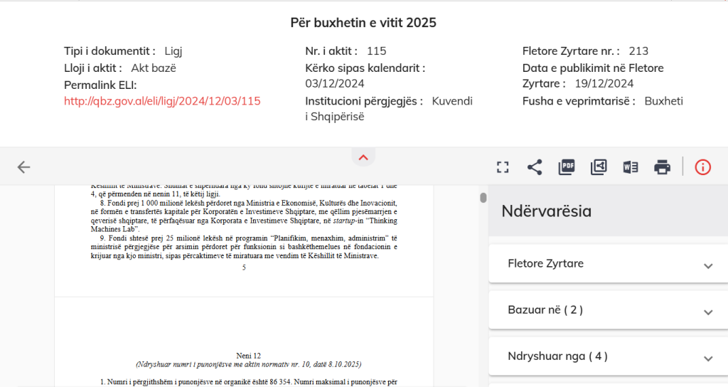 Vendimi referon si bazë ligjore nenin 100 të Kushtetutës, i cili përcakton formën e akteve që nxjerr Këshilli i Ministrave, si dhe pikën 13, të nenit 11, të ligjit nr. 115/2024 “Për buxhetin e vitit 2025”, të ndryshuar. Ndonëse jemi në vitin 2026, vendimi i referohet ligjit për buxhetin e vitit 2025. Dhe për më shumë çudi, në variantin e azhornuar të këtij ligji në Fletoren Zyrtare, neni 11 nuk ka 13 pika – ai mbyllet në pikën 9. Pra referenca mbi të cilën është mbështetur VKM-ja nuk ekziston.