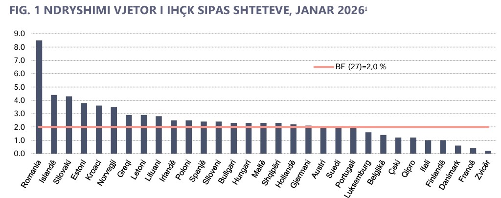 Në kuadër të detyrimeve statistikore dhe monitoruese të parashikuara nga legjislacioni shqiptar dhe harmonizimi i tij me acquis communautaire të Bashkimit Evropian, Instituti i Statistikave (INSTAT) ka publikuar të dhënat e Indeksit të Harmonizuar të Çmimeve të Konsumit (IHÇK) për muajin janar 2026.